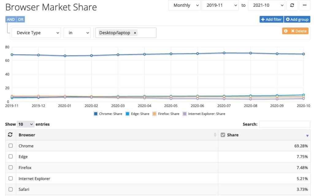 Google Chrome a une part de marché de près de 70%- Très loin derrière Edge et Firefox sont à un peu plus de 7%